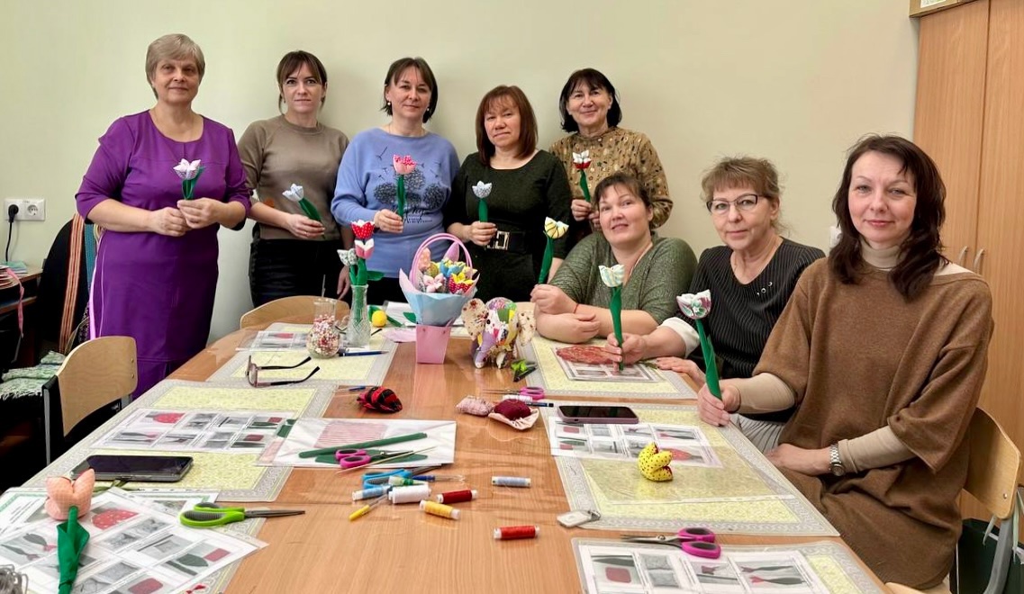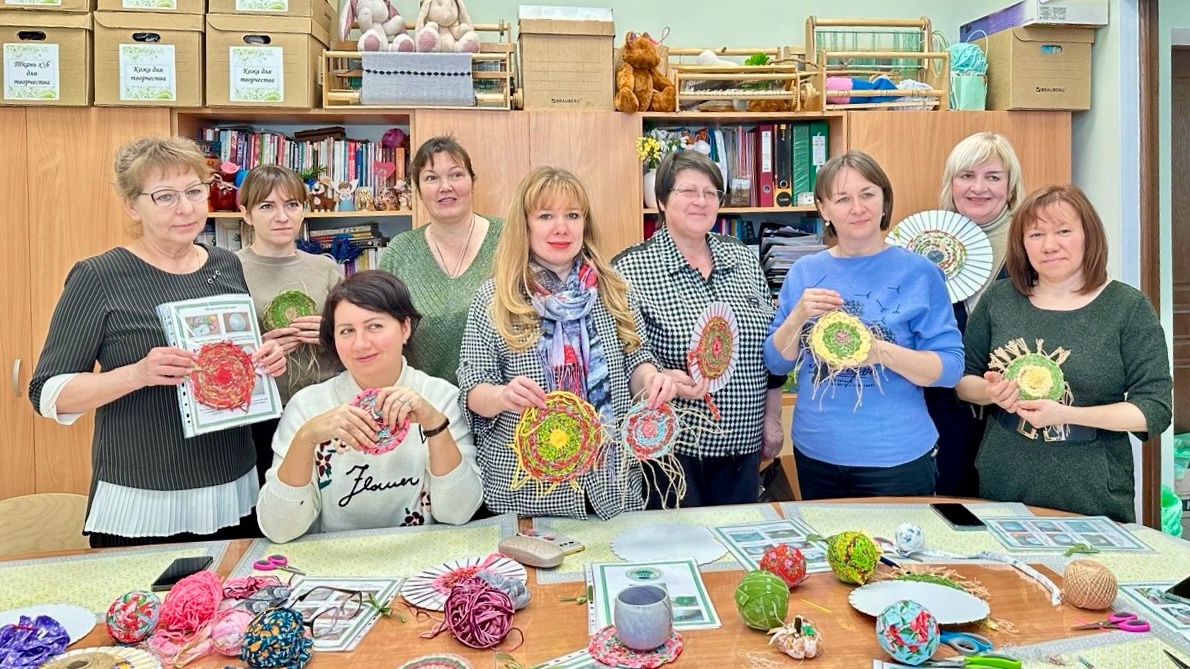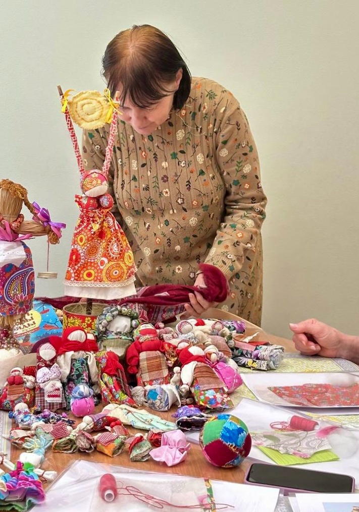 🪆11 февраля Любовь Яковлевна Лебедева успела побывать на четырех различных мастер-классах. Она познакомилась с техниками кругового ткачества, научилась делать подставку под горячее, а также создала текстильные цветы и игровые тряпичные куклы, включая куклу-сувенир из пряжи. Это был отличный день, наполненный новыми знаниями и вдохновением!